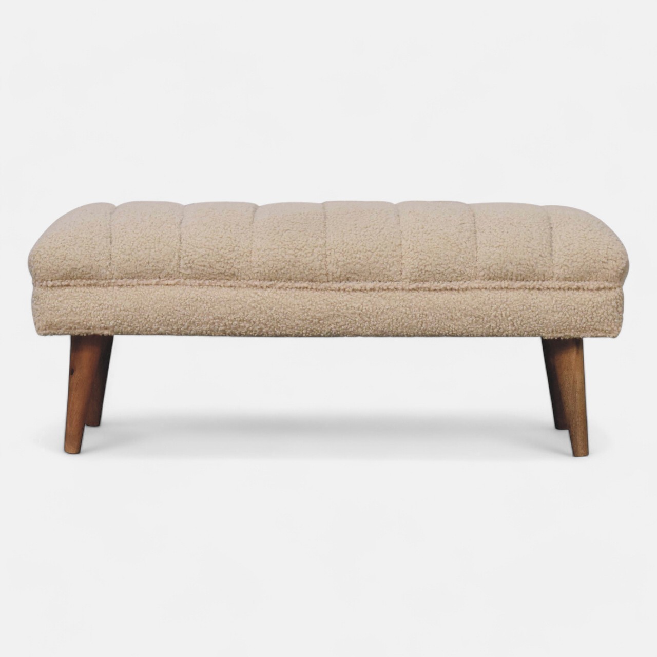 Elevate your living space with our chic Cream Boucle Puffer Bench. Featuring a curved top design and luxurious boucle upholstery, it adds an elegant touch of opulence. Place it in your living room or hallway for a stylish statement in any contemporary setting.